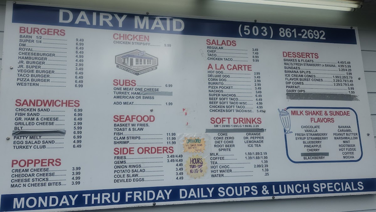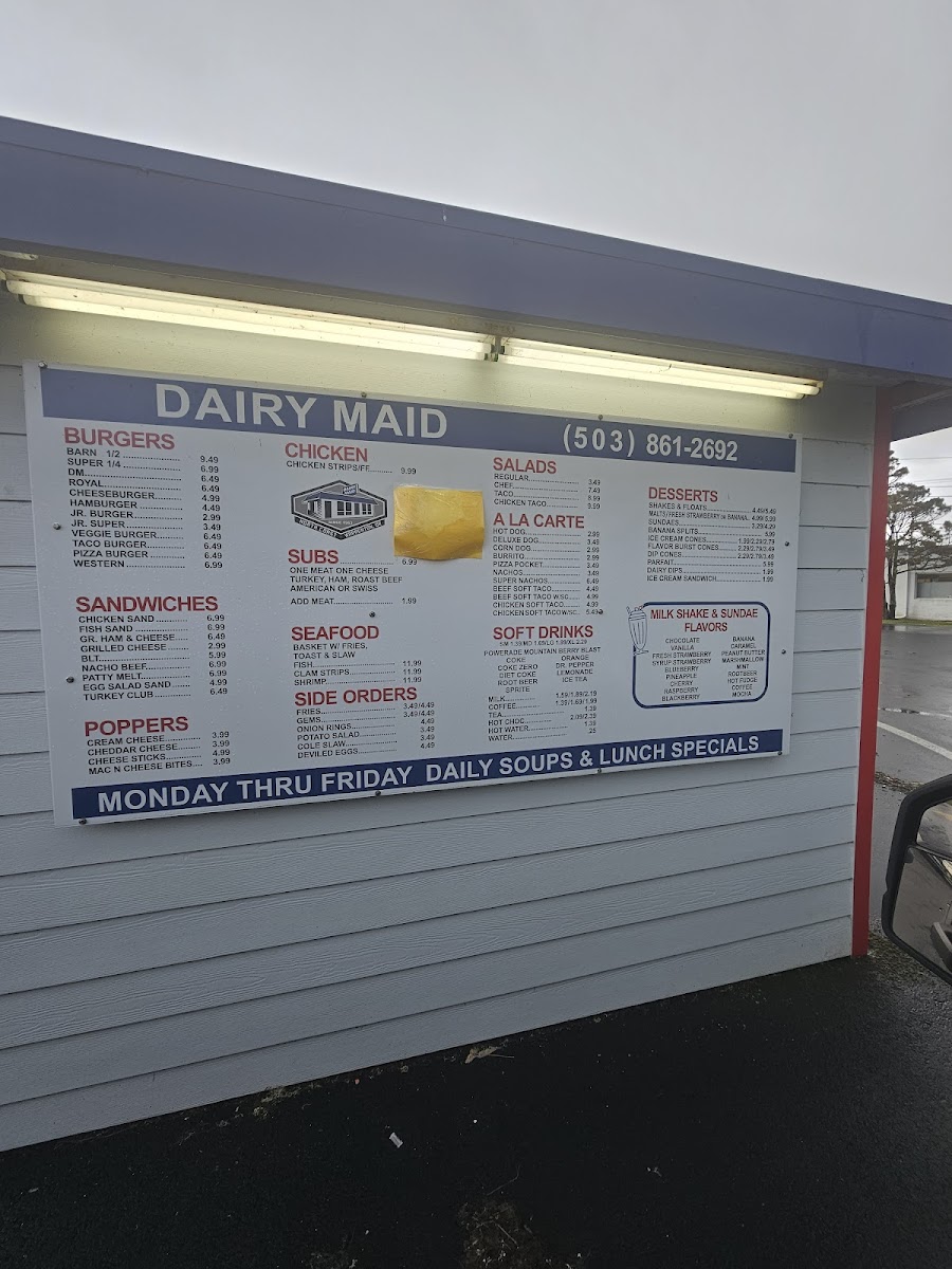 Nestled in the heart of Warrenton, Oregon, Dairy Maid is a delightful throwback to classic American diners, serving up a mouthwatering array of burgers and shakes. The menu shines with juicy options like the Cheeseburger for just $4.99, but it's the Veggie Burger at $6.49 that proves it caters to everyone. Customers rave about the crispy fries and thick milkshakes, with flavors galore, making it an irresistible stop for comfort food lovers.